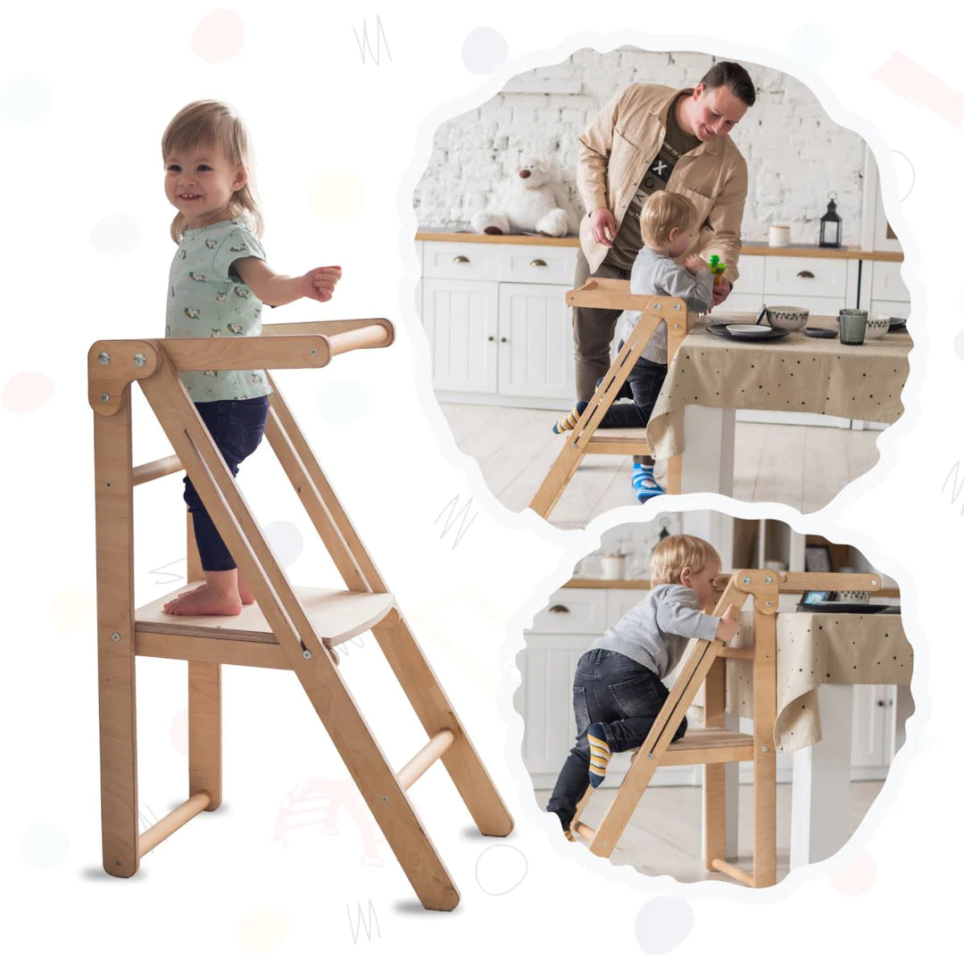 Marchepied pliable pour tout-petits - Chaise pour enfant qui grandit - Beige/Chocolat