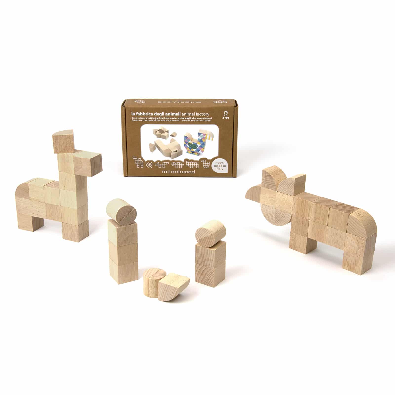 Animal Factory est un jeu dans lequel vous pouvez créer des poissons, des renards, des zèbres et des lions, des chameaux, des canards, des serpents, des dragons et des dinosaures et tout ce que vous pouvez imaginer. Animal Factory est fabriqué avec du bois issu de forêts gérées selon une approche socialement et écologiquement responsable. Un jeu sécuritaire et écologique réalisé avec des couleurs non toxiques. 100% fabriqué en Italie.