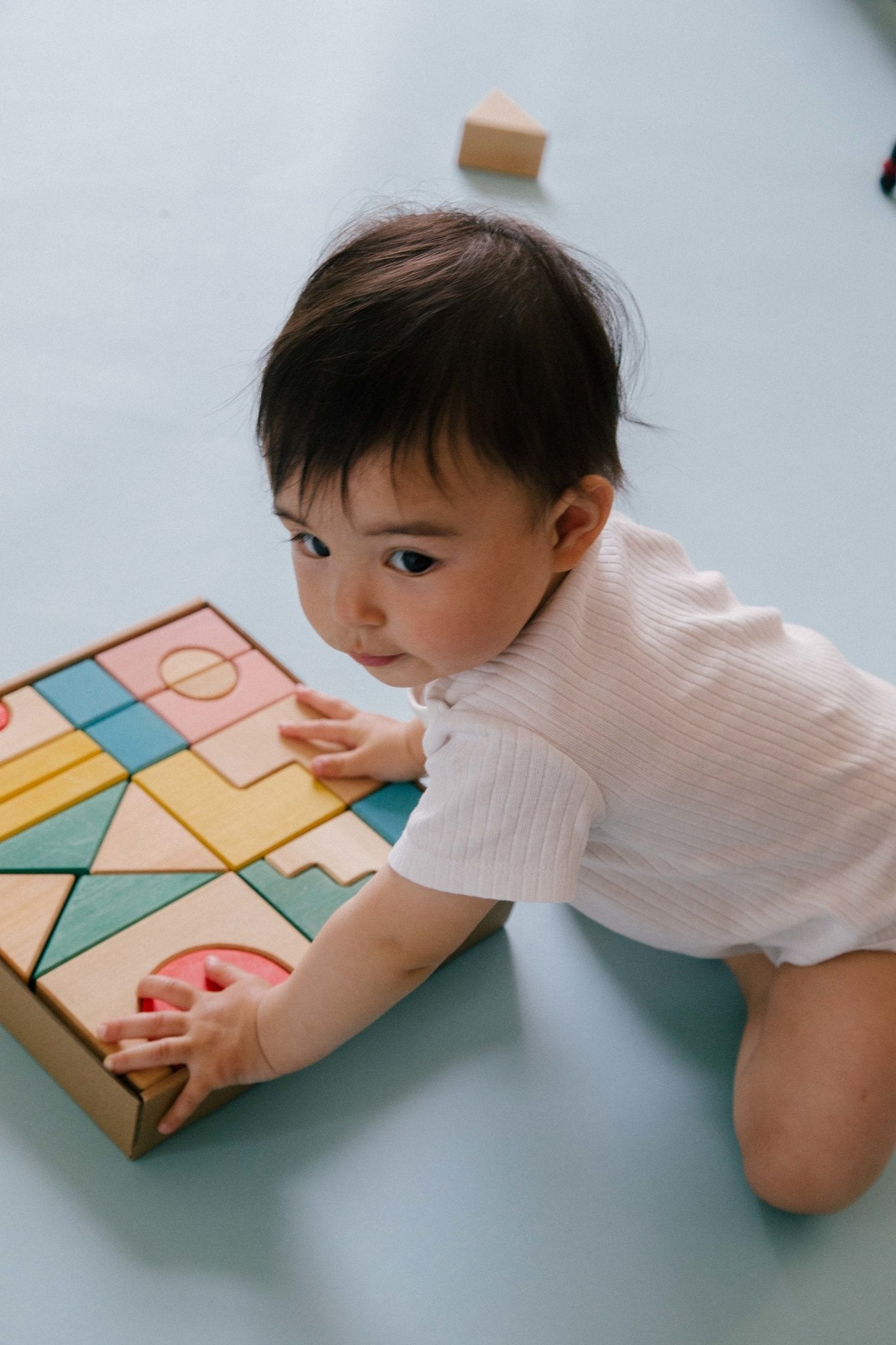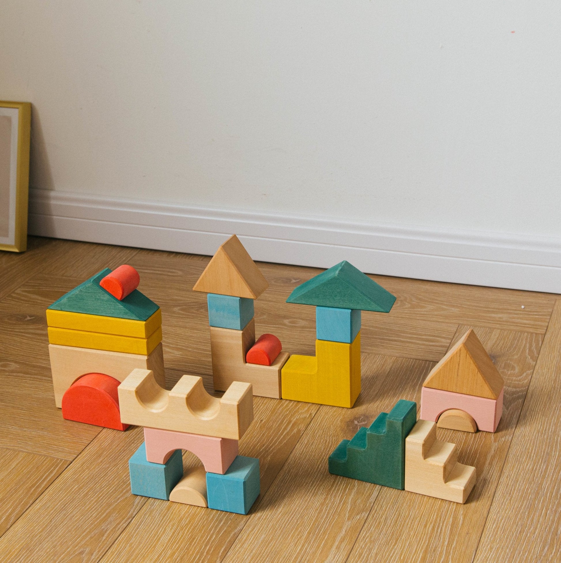 Non toxiques et testés pour la sécurité, les blocs ont été finis avec des colorants à base d'eau et ne sont pas laqués, ce qui donne une texture naturelle parfaite pour une manipulation facile et des projets de construction robustes.