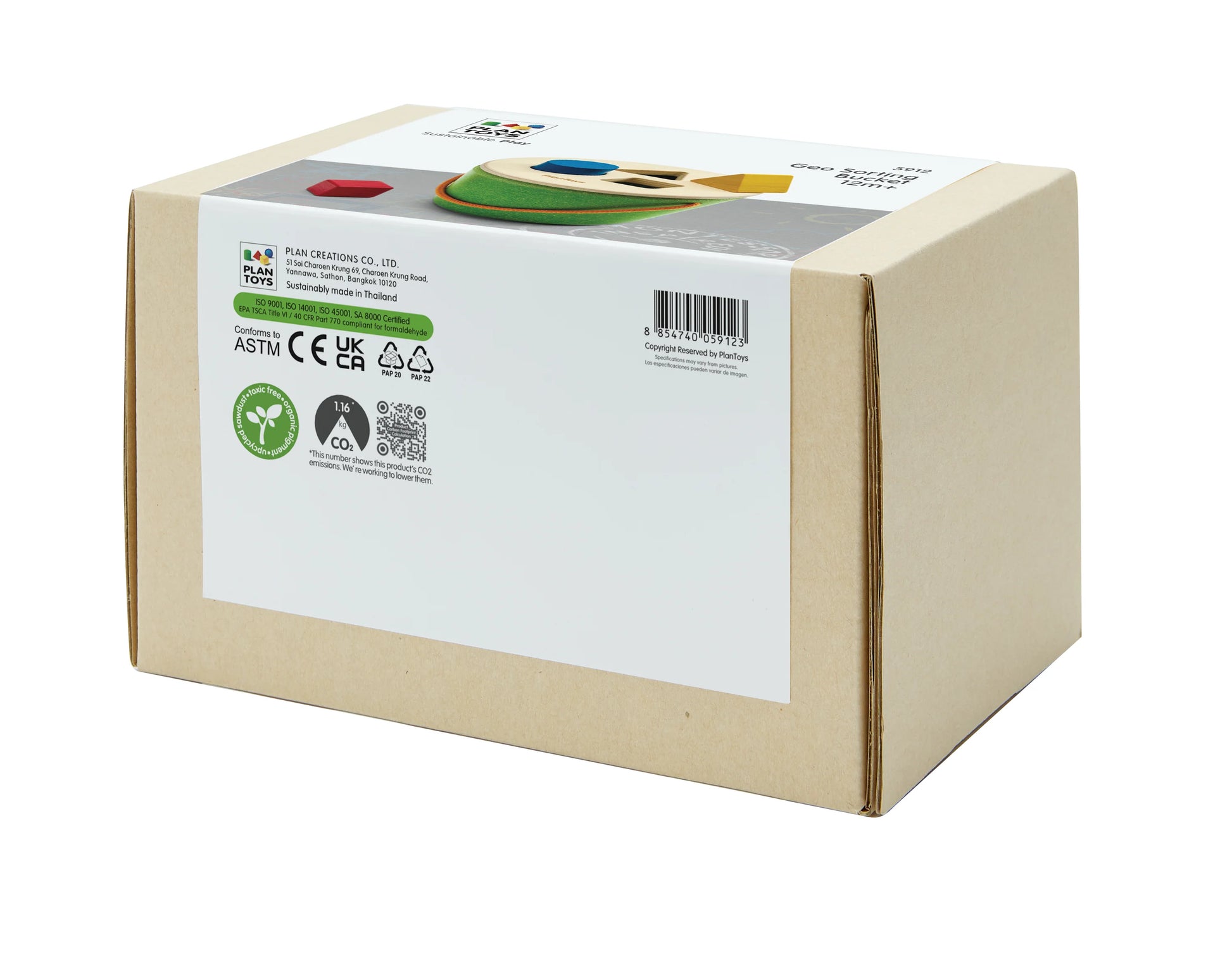 Inspired by Montessori play, the Geo Sorting Bucket fosters shape recognition and hand-eye coordination as children rotate and align three wooden shapes into matching slots on the lid, building precision, focus and problem-solving skills. This simple activity encourages observation, self-correction, and independent learning through purposeful play.
