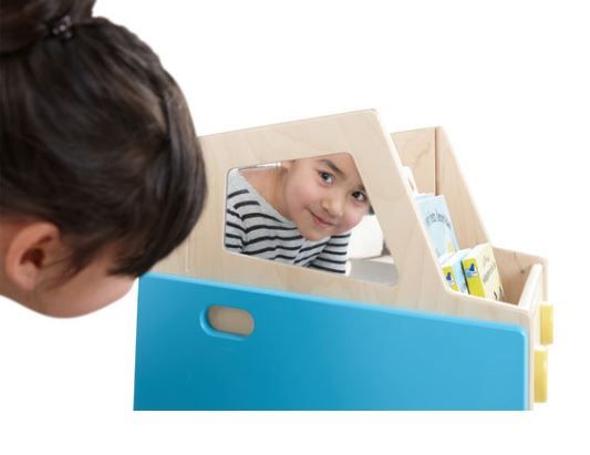 Le bus robuste, stable et anti-basculement peut accueillir des livres pour enfants de toutes tailles. La barre de poussée avec ses roulettes intégrées peut facilement être poussée vers votre lieu de lecture préféré. Espace de rangement mobile au caractère ludique qui permet une présentation décalée et attrayante des livres avec deux cloisons amovibles. Les fenêtres latérales sont miroirs pour que vous puissiez voir votre propre reflet. Avec autant d'espace, vous pouvez y ranger sans limite : jouets, matériel pédagogique ou animaux en peluche. Parfait pour les bibliothèques pour enfants, les salles d'attente et les centres d'apprentissage précoce. Le bus est équipé de quatre roulettes de meuble avec des « fenêtres » qui sont des surfaces miroir. Fabriqué en contreplaqué de bouleau de ¾" d'épaisseur et peinture résistante aux couleurs. Livré déjà assemblé.