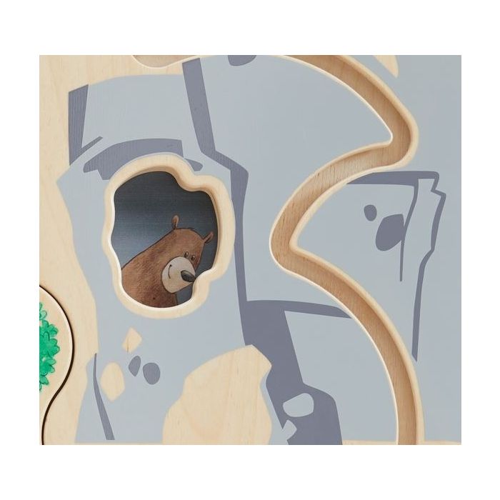 Il n'est pas nécessaire d'être dans une vraie forêt pour découvrir des choses, vous pouvez le faire sur le panneau mural Forest. Il offre des éléments optiques, acoustiques et haptiques.