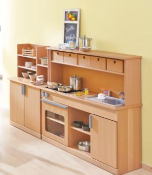 Little ones will have hours of fun cooking, setting the table or getting utensils ready for dinner. Perfect for early learning centers or commercial play areas. Made of solid beech wood veneer.