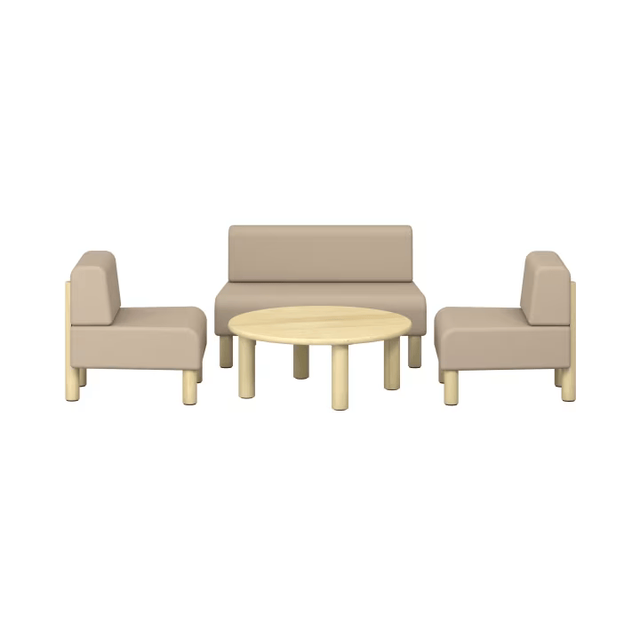 This upholstered children's role-play seating set with a sofa, two armchairs, and a table invites children to interact in fun and imaginative apartment play.