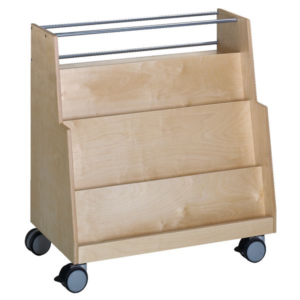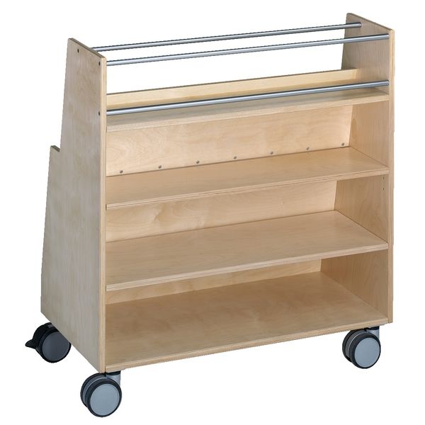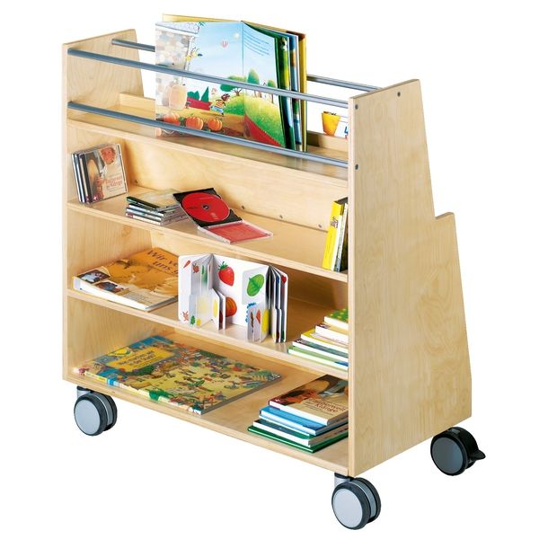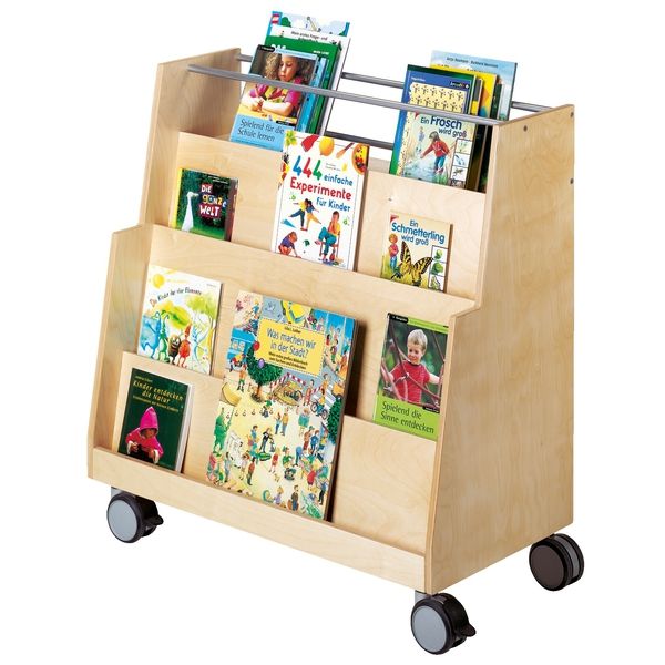 Une bonne présentation des livres encourage toujours la lecture. Et pour que les enfants ne perdent pas de vue les livres, ils peuvent être rangés de manière ordonnée sur le chariot de présentation. Même les livres d'images géants s'intègrent sur les trois étagères inclinées. Trois étagères ouvertes à l'arrière et un compartiment avec garde-corps créent de l'espace