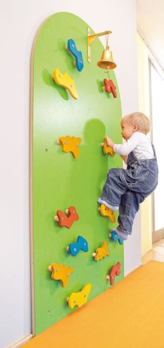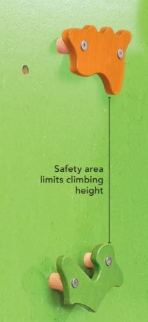 Distance between handles is chosen so that even 1-year-olds can reach upper handles, without allowing them to climb too high off the ground.