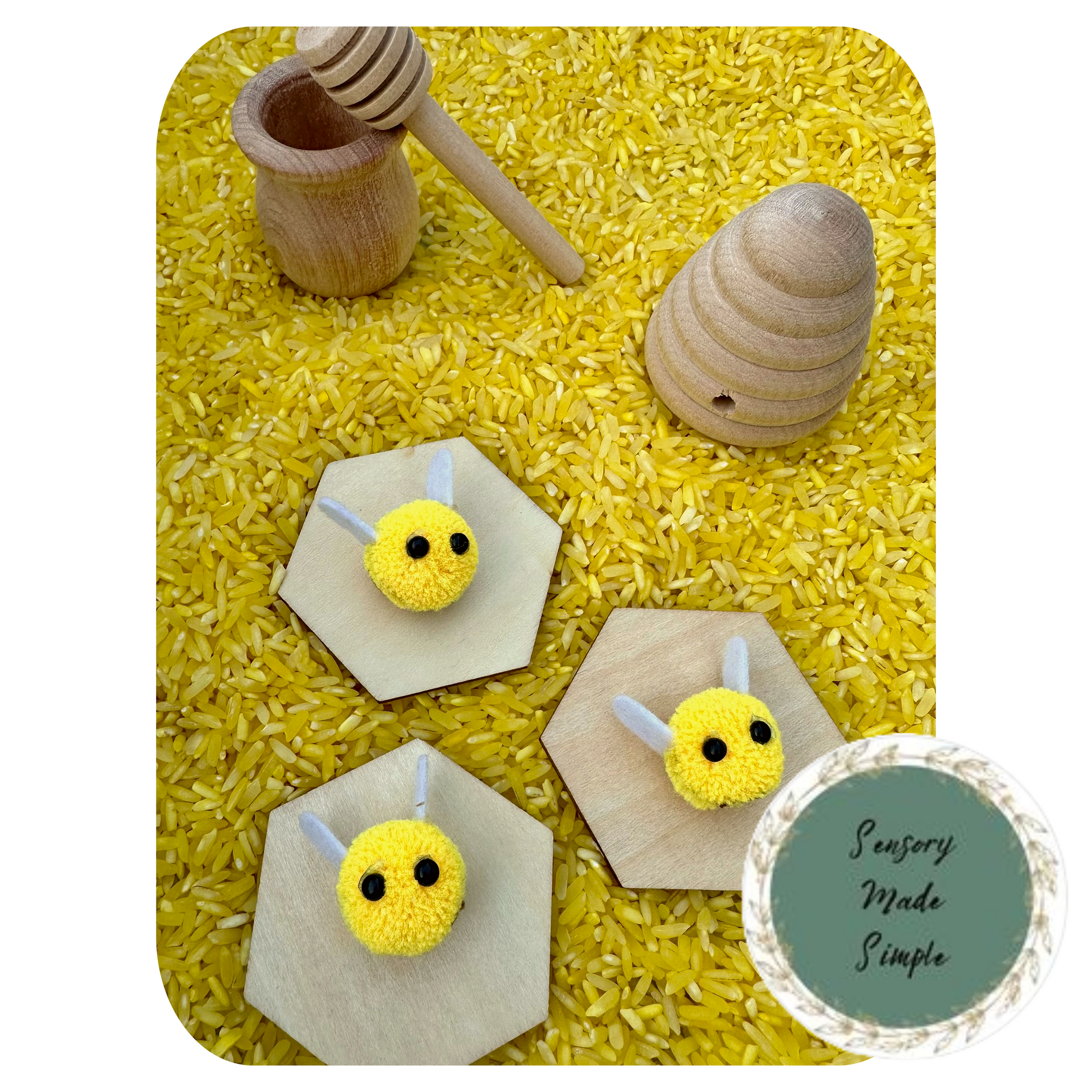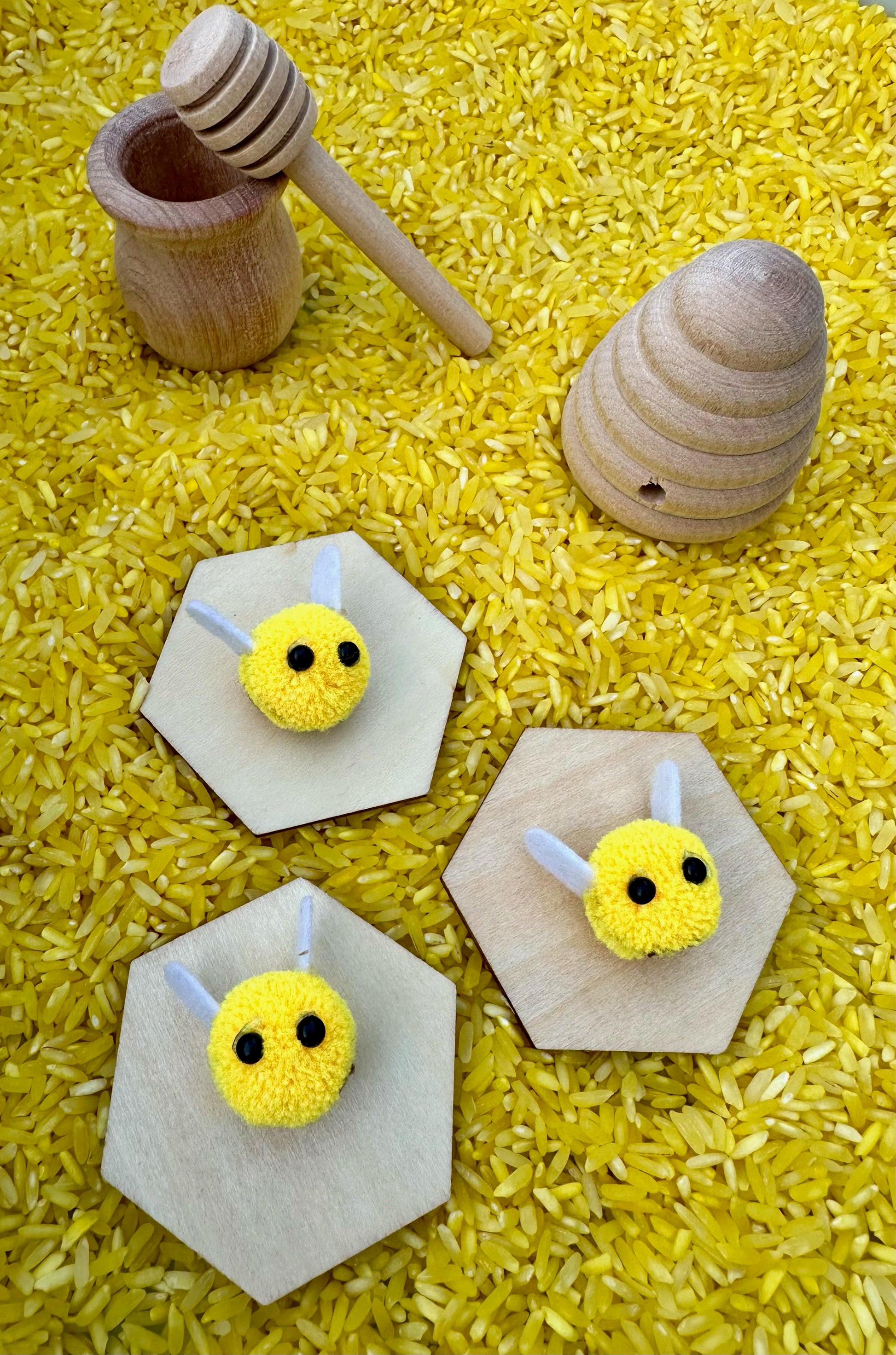 Ce kit d'abeilles est parfait pour vos besoins de jeu sensoriel ! Il comprend une ruche, un pot de miel et un bâton, 3 abeilles et 3 « rayons de miel ». Ce petit ensemble est un excellent ajout à votre kit de printemps et permet d'apporter l'apprentissage en plein air à l'intérieur ! Remplissage vendu séparément.