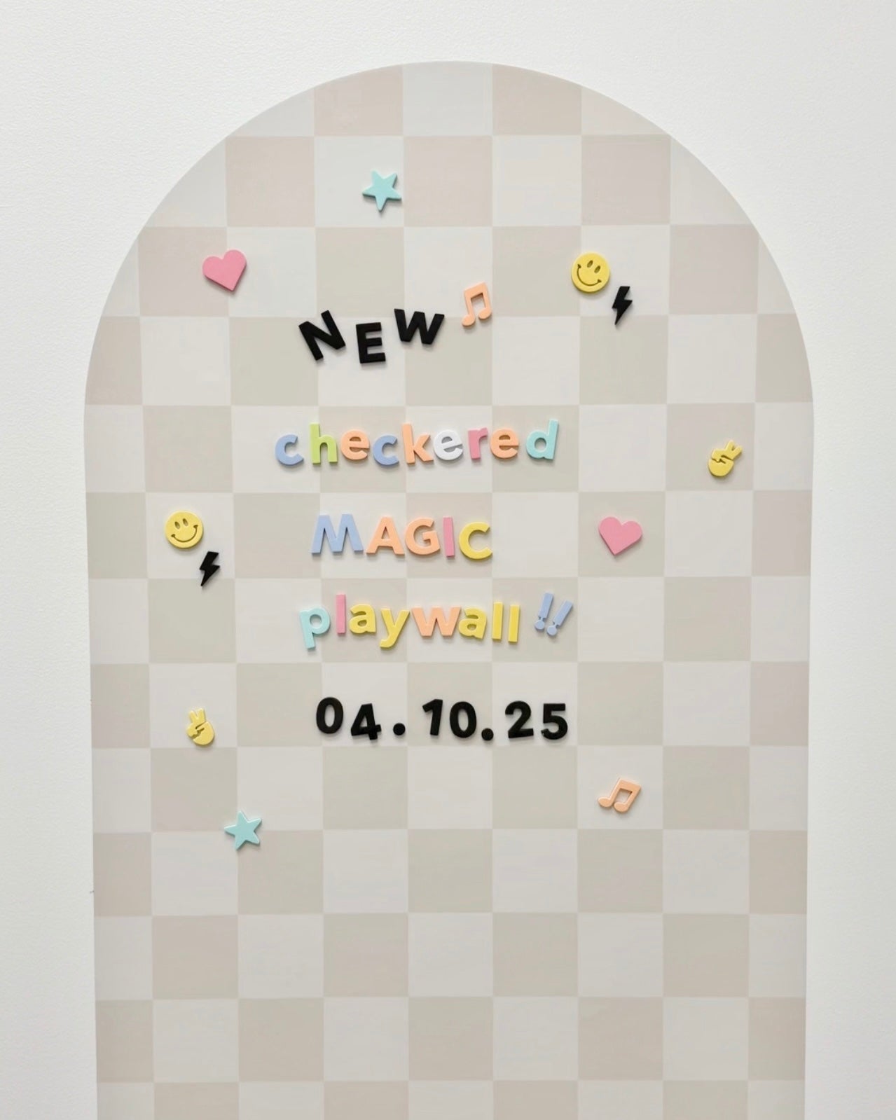 We took everything you love about the original Magic Playwall and supersized it. The MEGA is 50% bigger and features a trendy checkered print — a modern twist on our multifunctional, magnetic wall decal. Still the same matte finish and magic, now with even more room and height to play.
