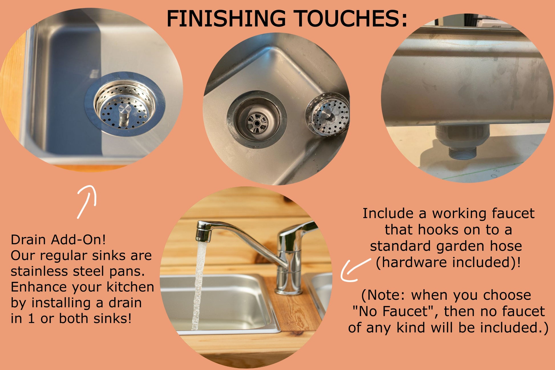 - Livré avec un four et une cuisinière et la possibilité d'ajouter un robinet fonctionnel compatible avec un tuyau extérieur (tout le matériel de fixation inclus avec le module complémentaire).