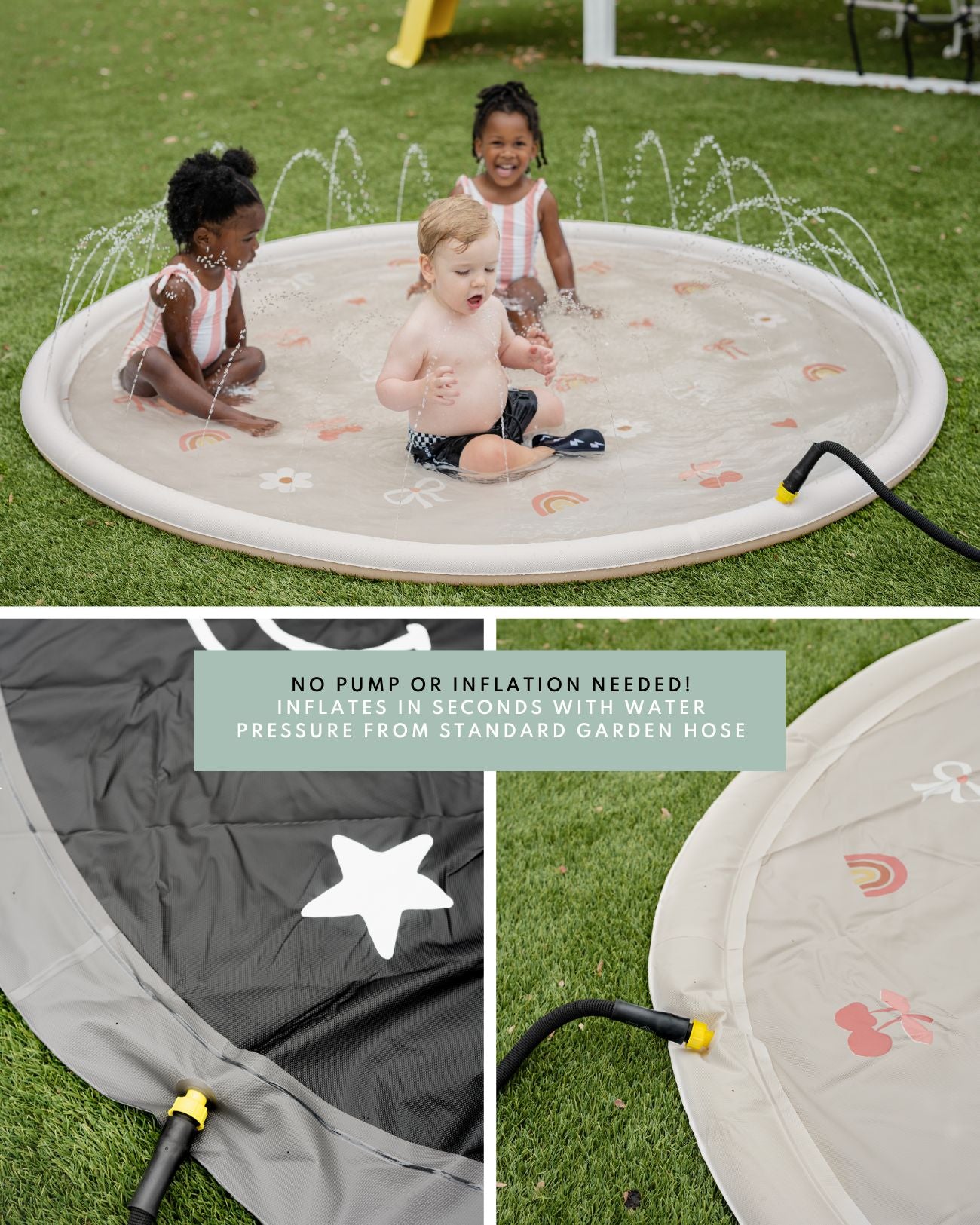 - 💦 Oversized 79" x 79" design – plenty of space for multiple kids to jump, run, and play