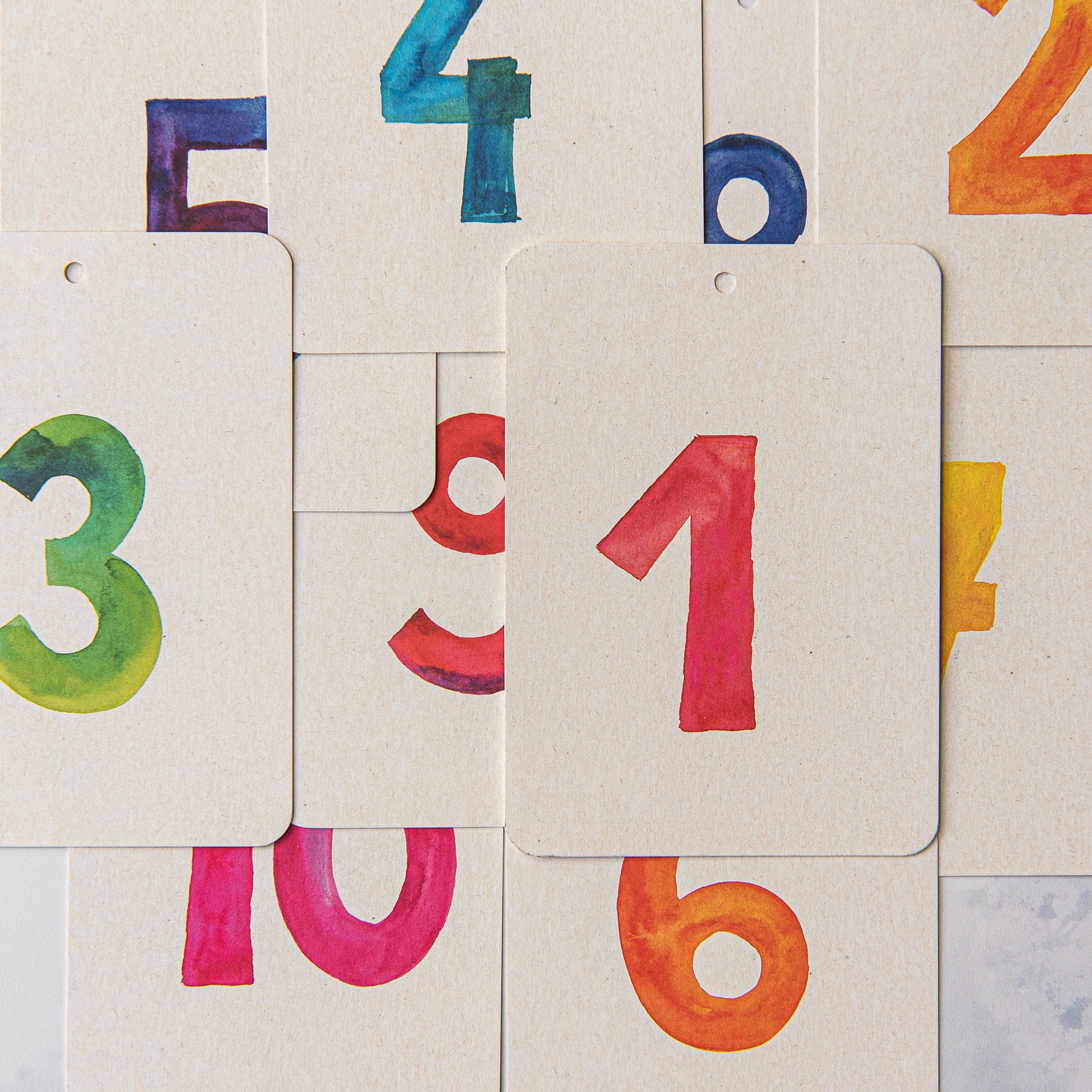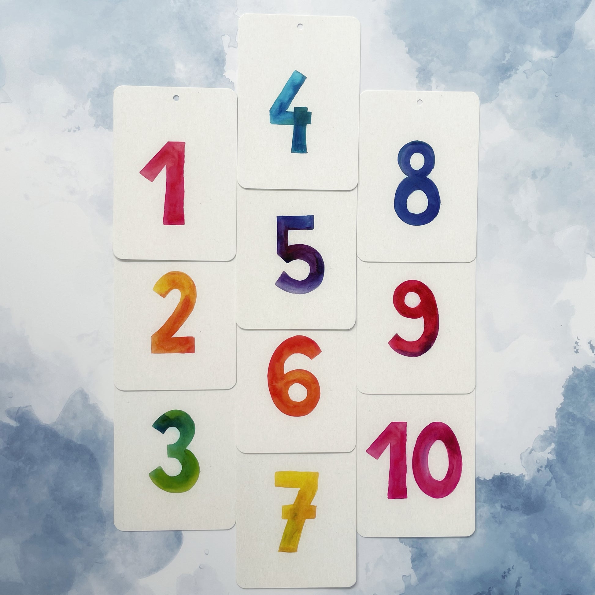 30 cartes illustrées – 10 pour chaque thème pédagogique (vocabulaire – couleurs – chiffres)