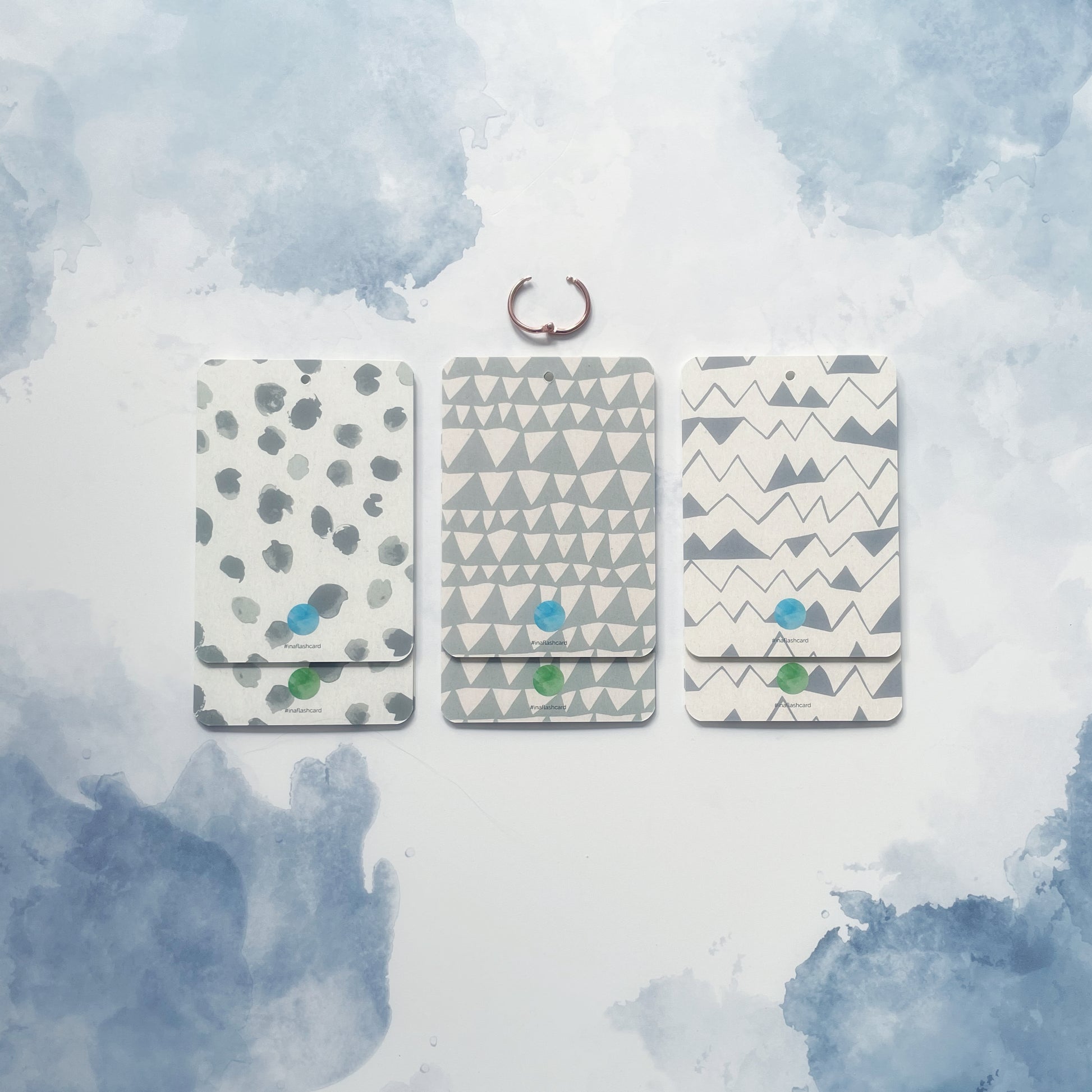 Chaque paquet se compose de trois jeux de cartes joliment coordonnés autour d'un thème central et d'un bel anneau en laiton pour les garder regroupés entre les jeux.