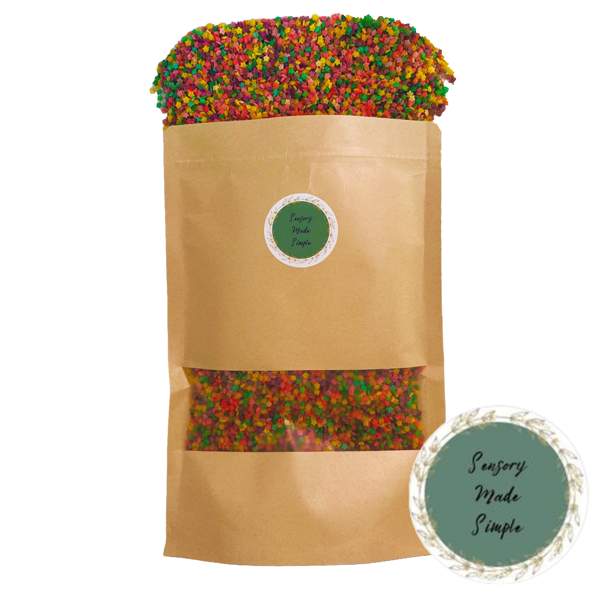 Ce mélange d'étoiles inspiré du printemps est une excellente base à utiliser seule ou à ajouter à d'autres charges pour créer une base sensorielle unique. Ces jolies étoiles sont parfaites pour ramasser et verser et pour favoriser le jeu pratique. Teintes à la main et mélangées en petits lots. Veuillez noter que tous les lots peuvent présenter de légères variations de couleur.