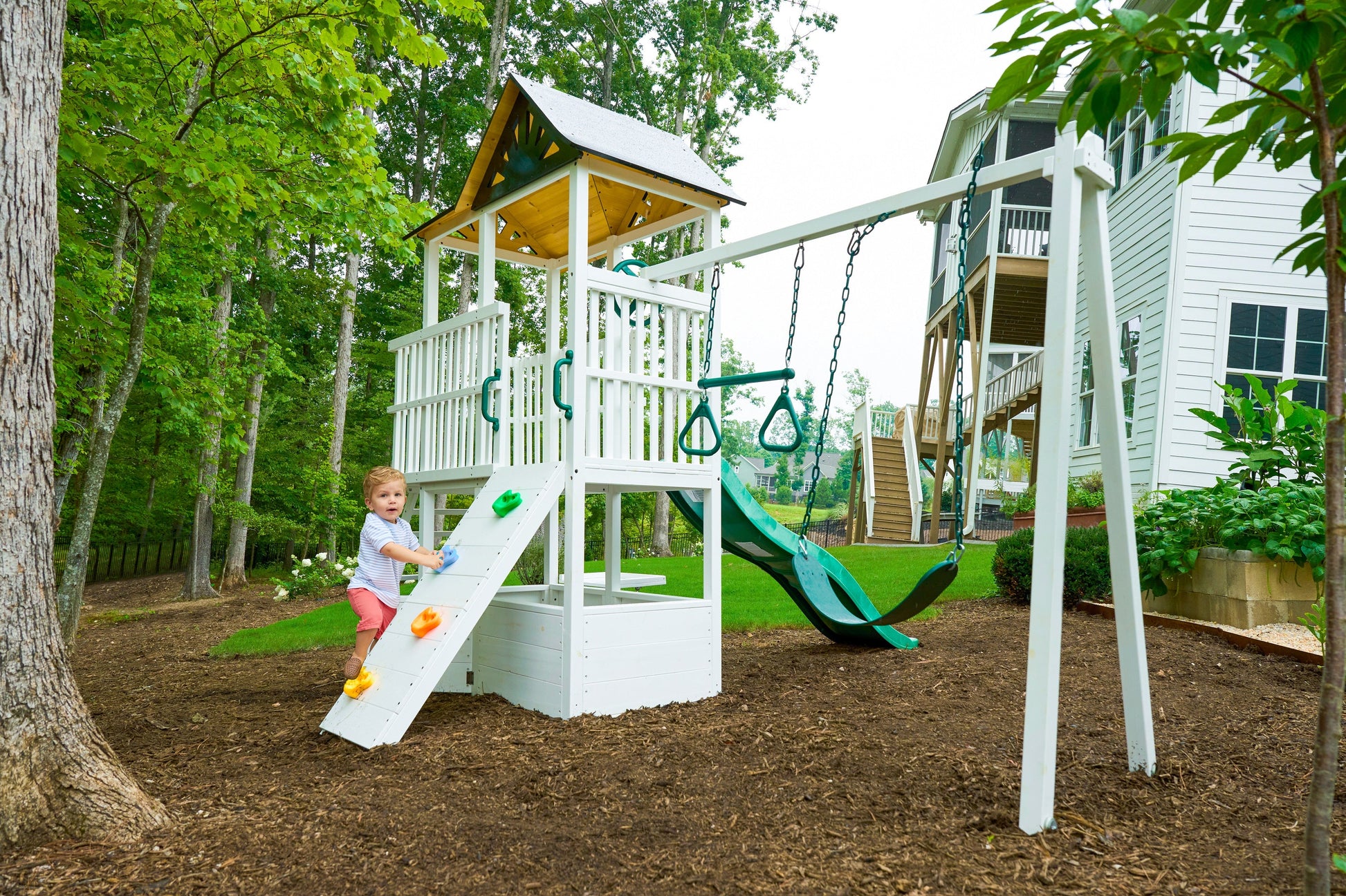Bring the joy of outdoor play to your backyard with the Avenlur Craftsman Modern Backyard Swing Set and watch your child's imagination soar as they create treasured memories.