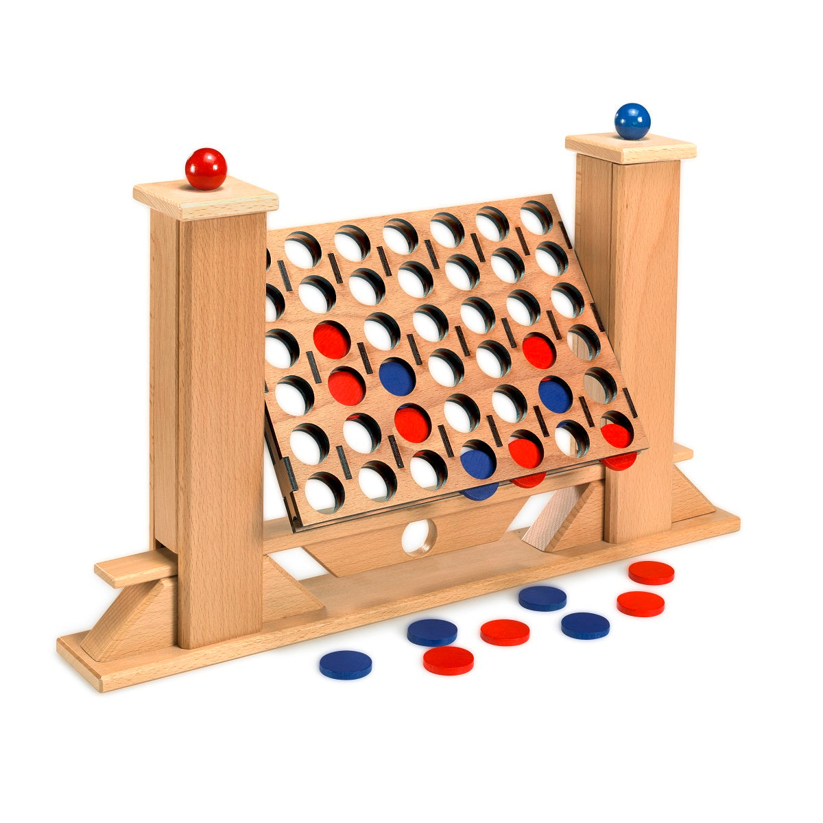 This game includes 21 red game pieces, 21 blue game pieces. The towers will hold the game pieces. One game piece each will be released when the slider is moved to the right or left. The playing field will be emptied by a turn by 180 degrees. Measures approximately 18.5 x 2.6 x 11.8 inches.
