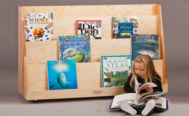 This is a sturdy, Canadian-made birch Library-style shelving unit made by Stock Wooden Toys. This brand has been supplying classrooms and learning spaces with play furniture and storage for more than 60 years. All of these products are made with Canadian wood in a family workshop just south of the Bruce Peninsula.