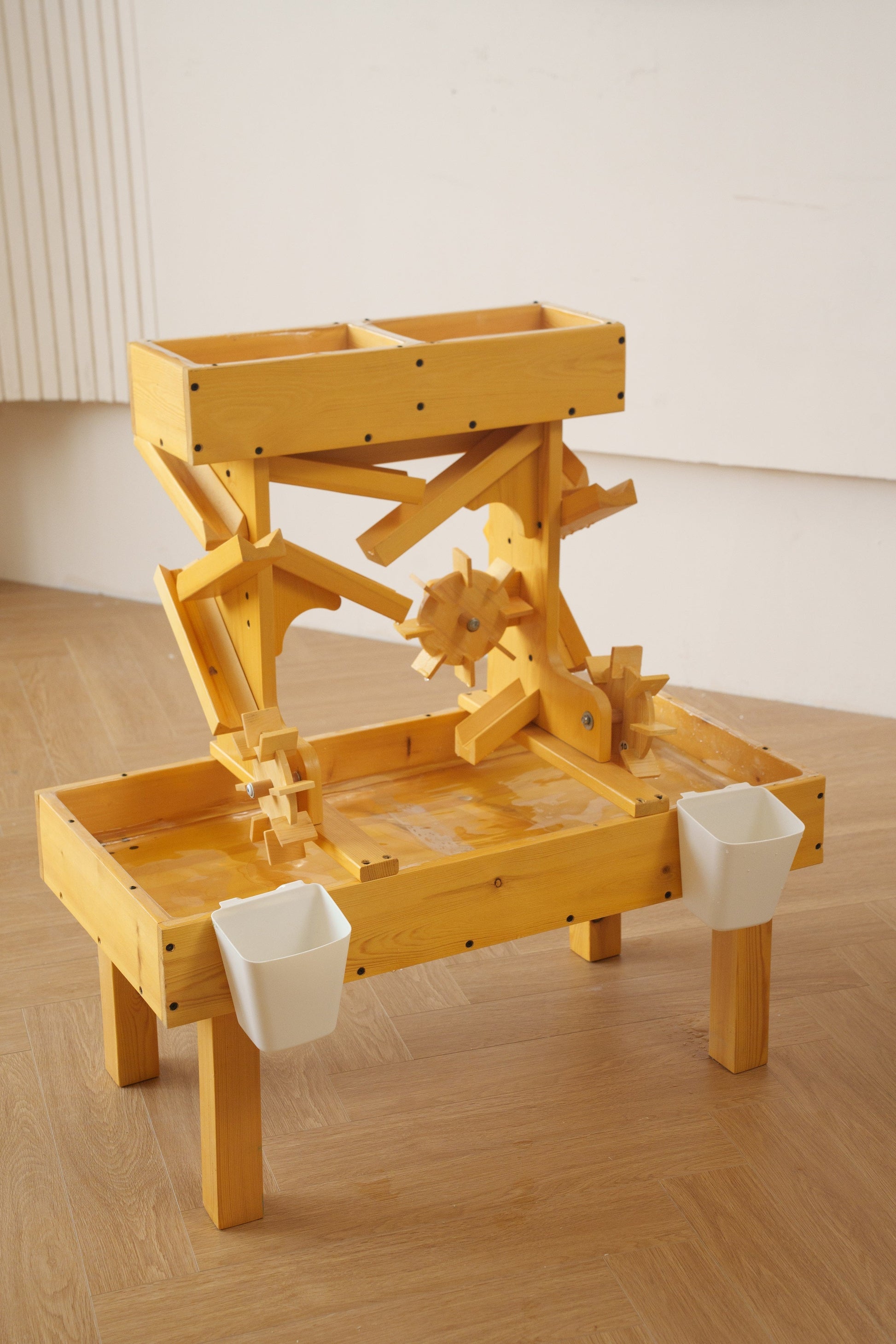 The water table features a spacious and sturdy design, equipped with multiple compartments, channels, and water elements that encourage hands-on experimentation and creativity. Children can pour, splash, and manipulate the water as they explore cause and effect, learn about buoyancy, and discover the principles of water flow.