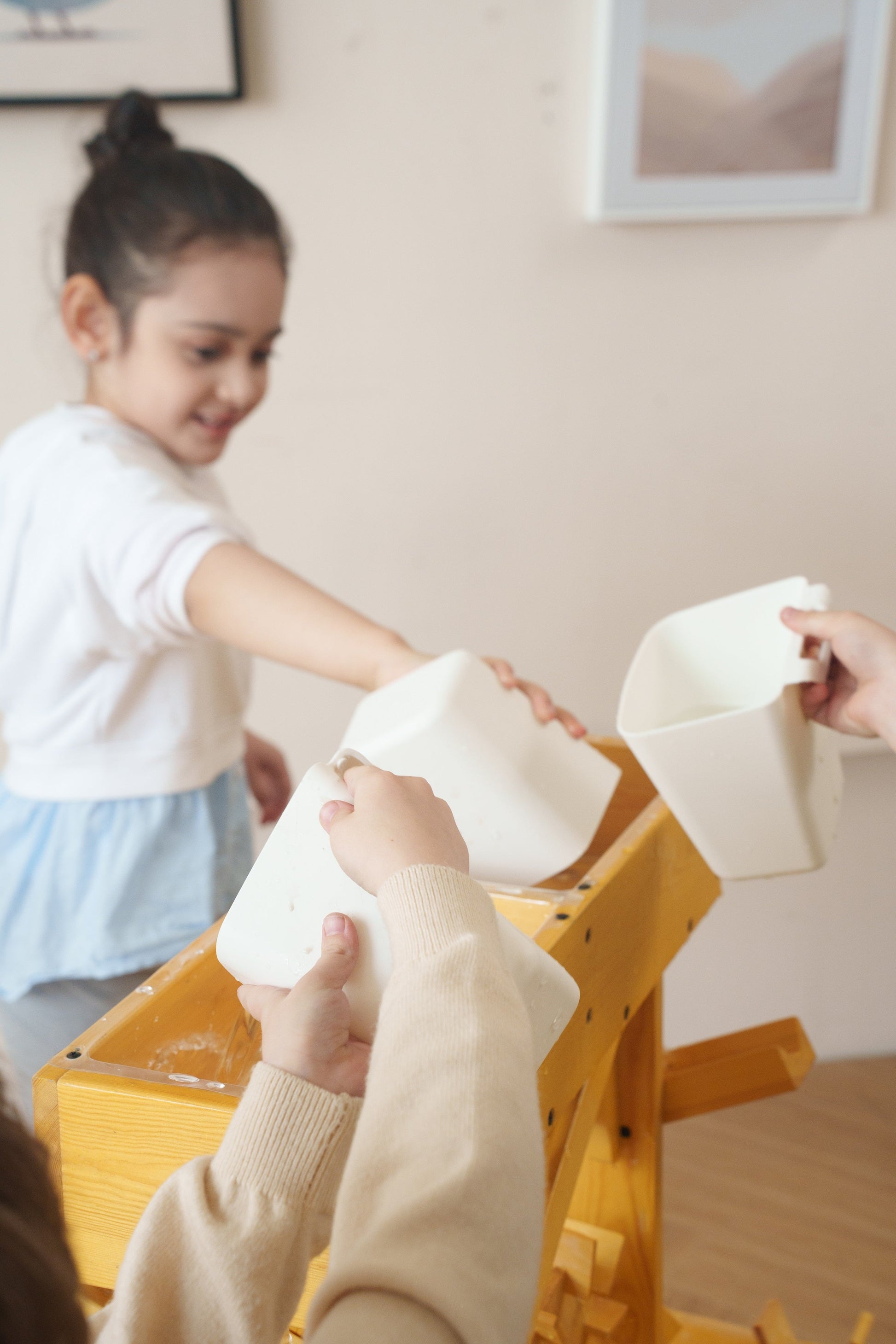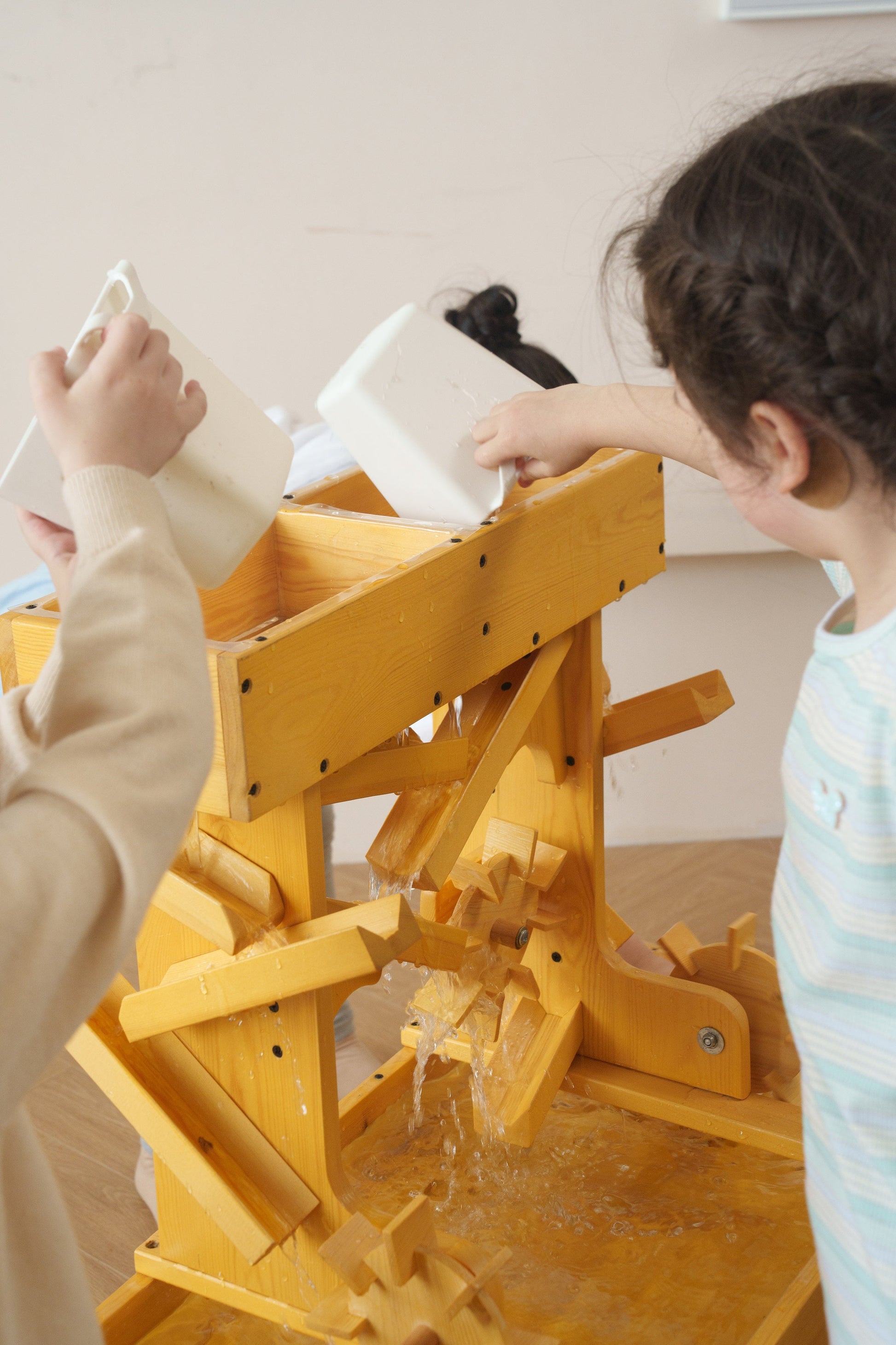 The interactive nature of the water table stimulates sensory development, as children engage with the different textures, temperatures, and sounds of water. They develop fine motor skills, hand-eye coordination, and spatial awareness as they manipulate objects, pour water, and experiment with water currents.