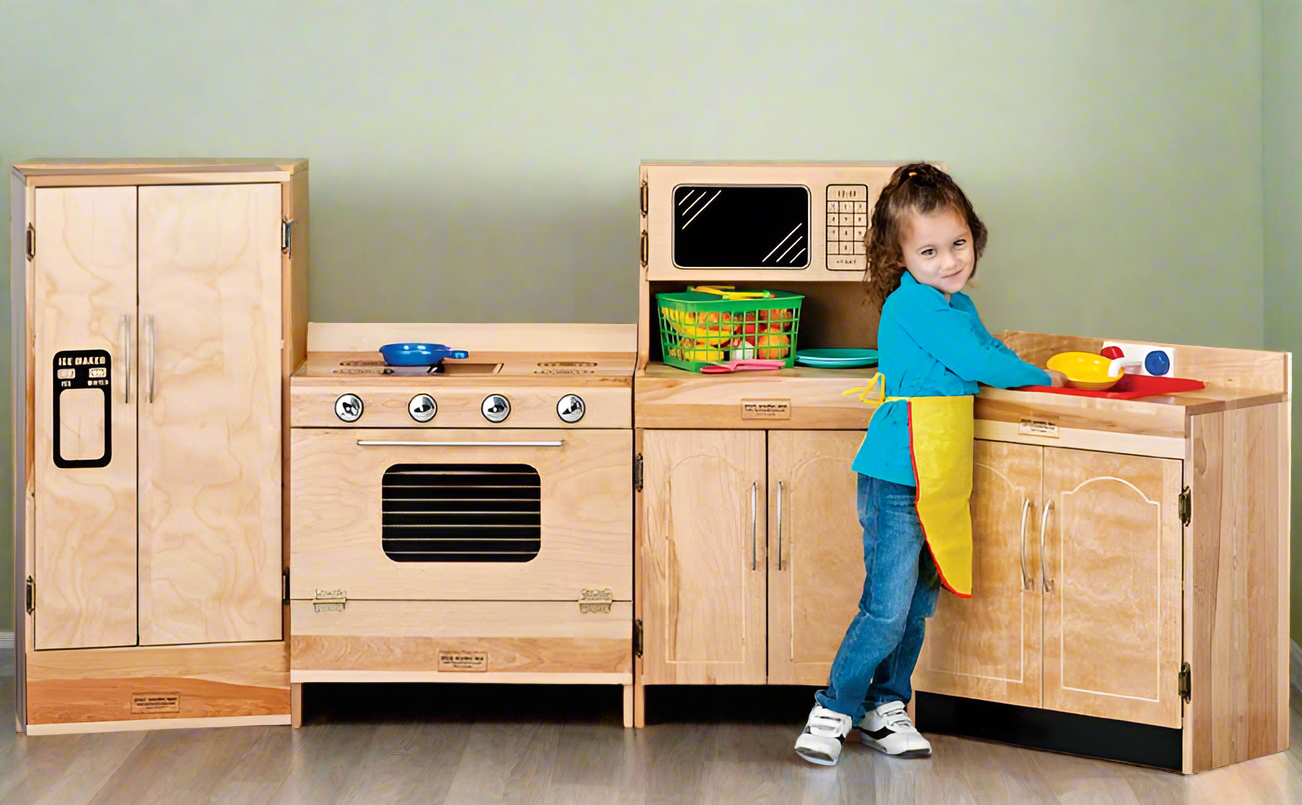 This sturdy play kitchen furniture is suitable for educational use, including kindergartens, primary classrooms, daycares and libraries. It's also a wonderful addition to your home's playroom. This is a very well made Canadian product that will last for generations of play.