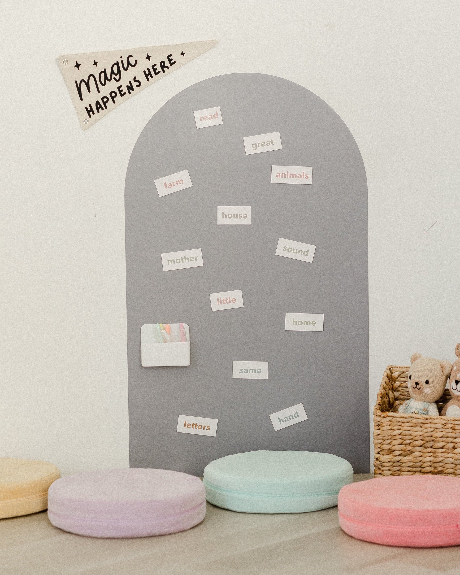 Cherrypick's durable foam magnets were made to work seamlessly with your Magic Playwall or any magnetic surface, helping little learners recognize and practice high-frequency words they’ll encounter most often when learning to read.